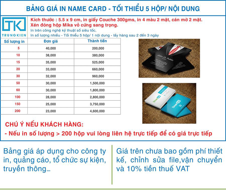 Bảng giá In Offset Card Visit