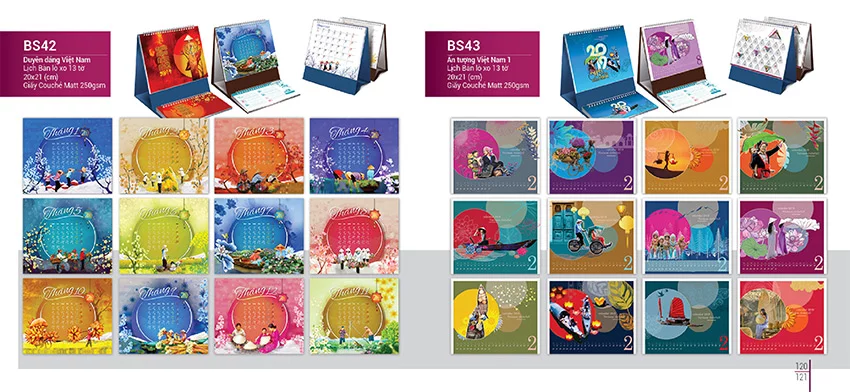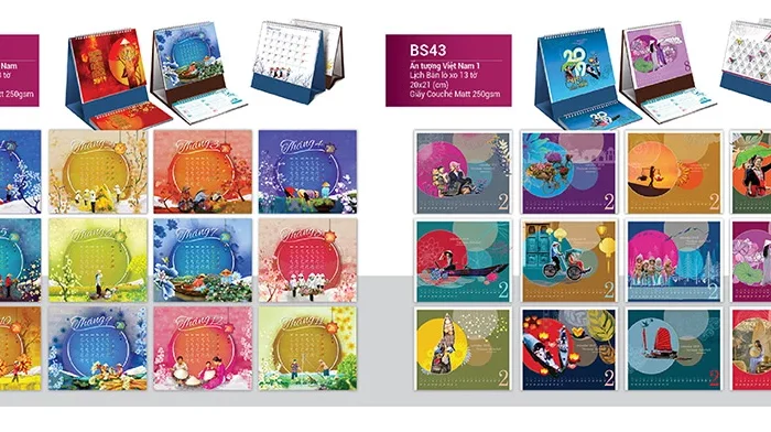 - Lịch để bàn: lịch để bàn đặc biệt 52 tuần, lịch dể bàn đế nhựa, lịch chữ A, lịch chữ M,…